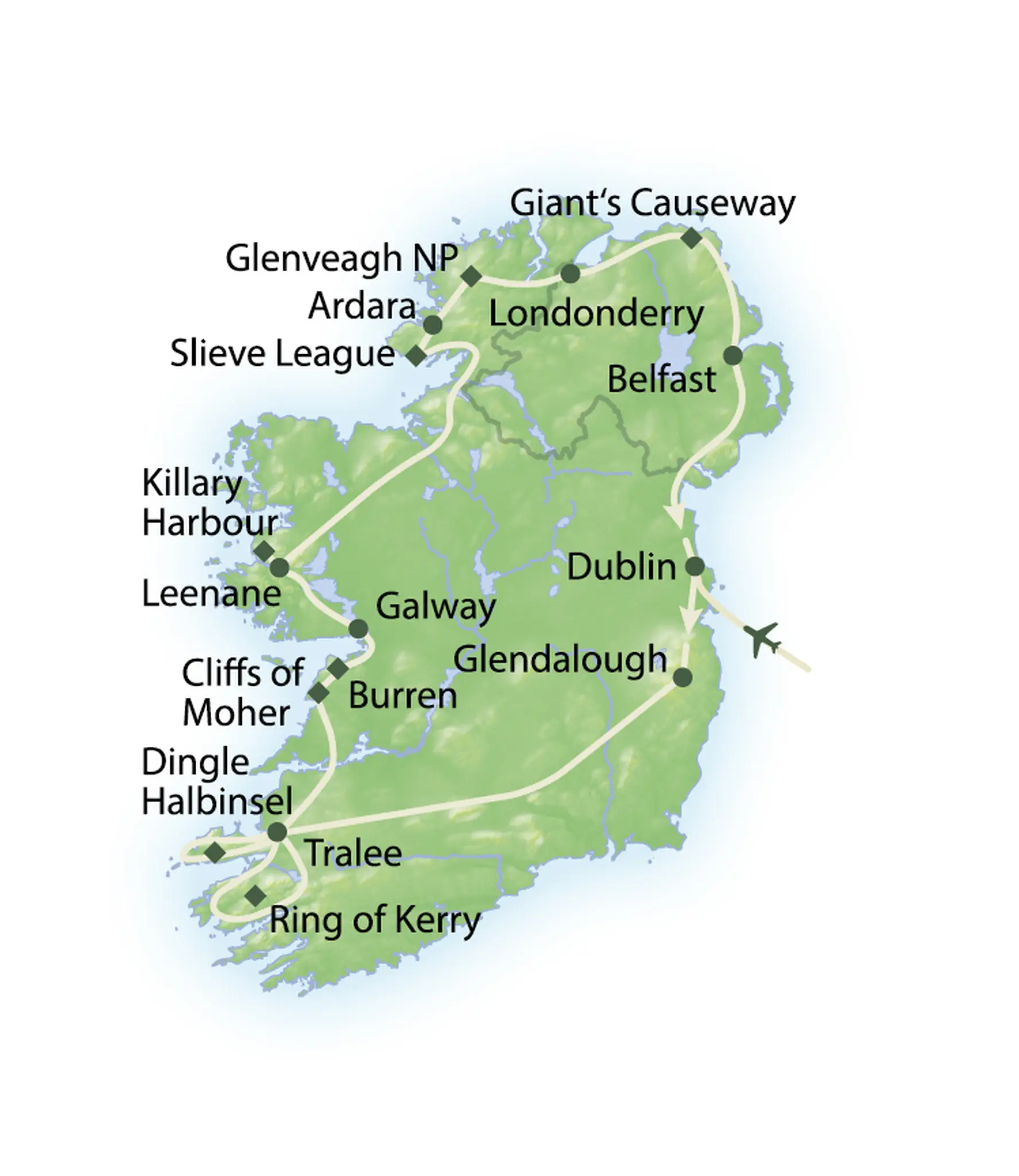 Zubucherreise; Internationale Gruppe mit Deutsch sprechender Reiseleitung ab/bis Dublin