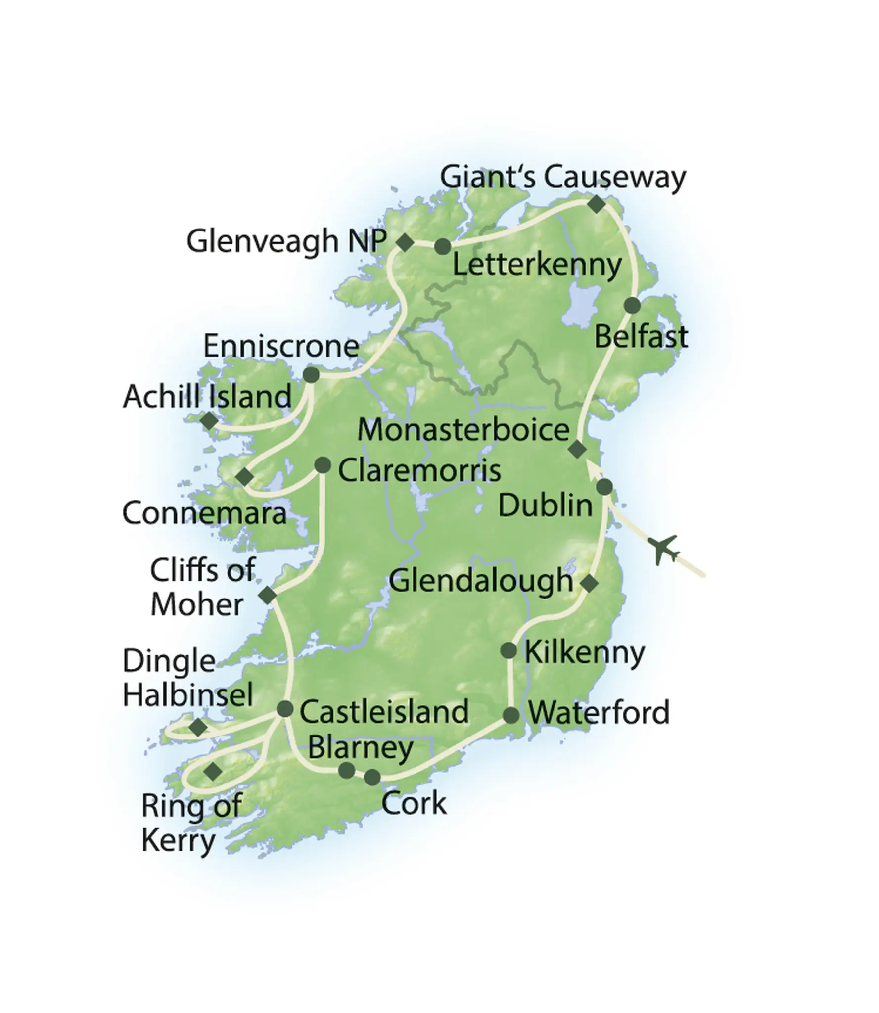 Werden Sie zum Irland Experten und erhalten Sie einen besonders tiefen Einblick in die Geschichte des Landes. Landschaftliche und kulturelle Highlights sowie irische Leckereien erwarten Sie.