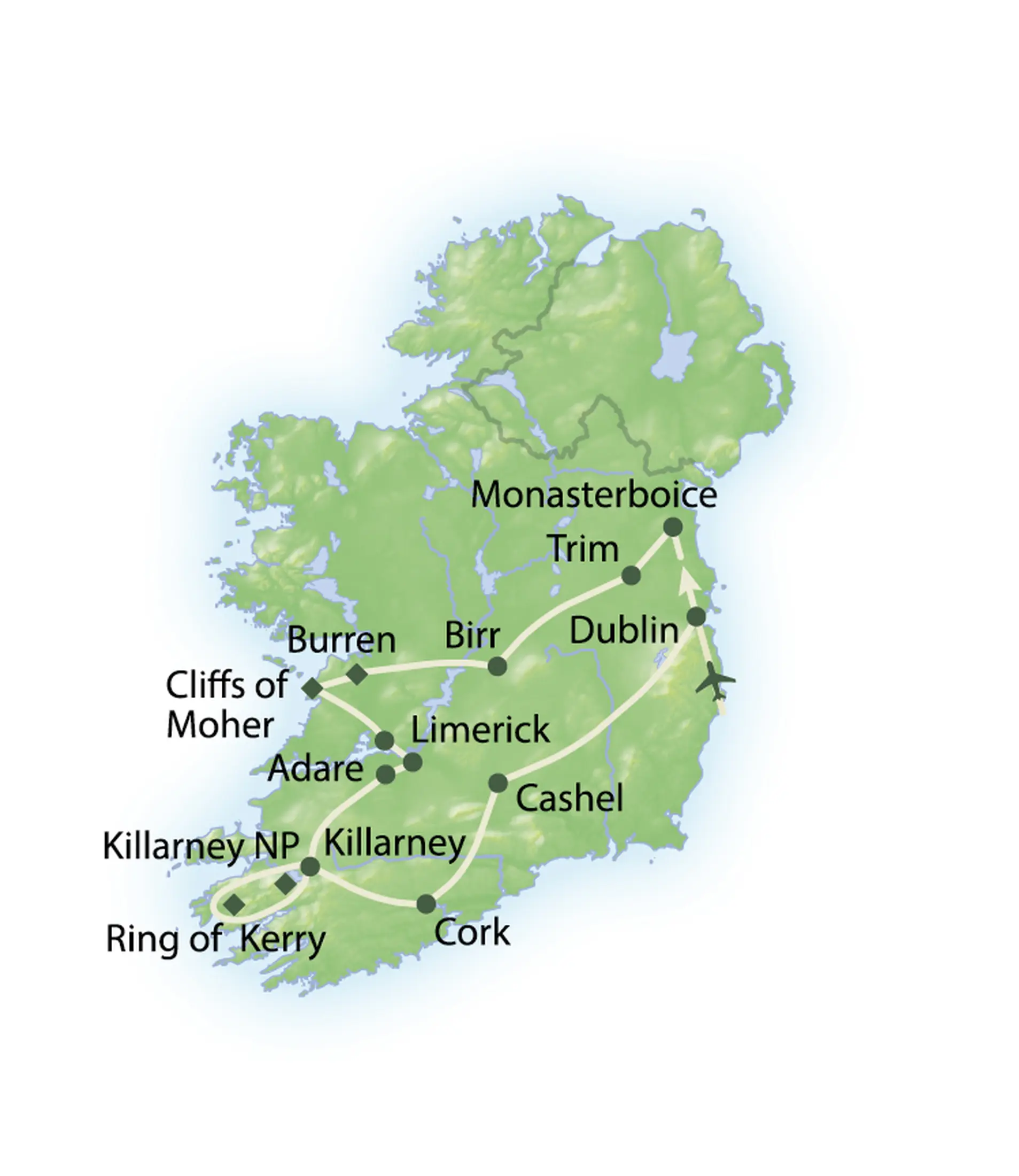 Auf dieser Reise entdecken Sie in einem kompakten Reisezeitraum die bedeutendsten Highlights Irlands. Es erwarten Sie die Metropole Dublin, der Ring of Kerry mit seinen tollen Aussichtspunkten sowie die atemberaubenden Cliffs of Moher.