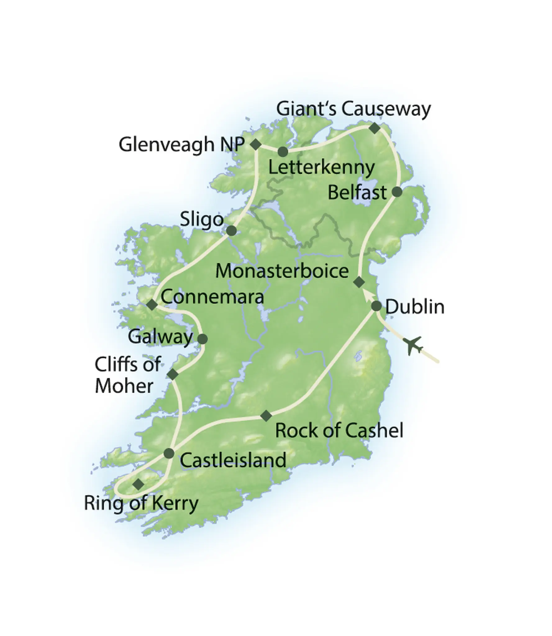 • Zubucherreise; Internationale Gruppe mit Deutsch sprechender Reiseleitung ab/bis Dublin