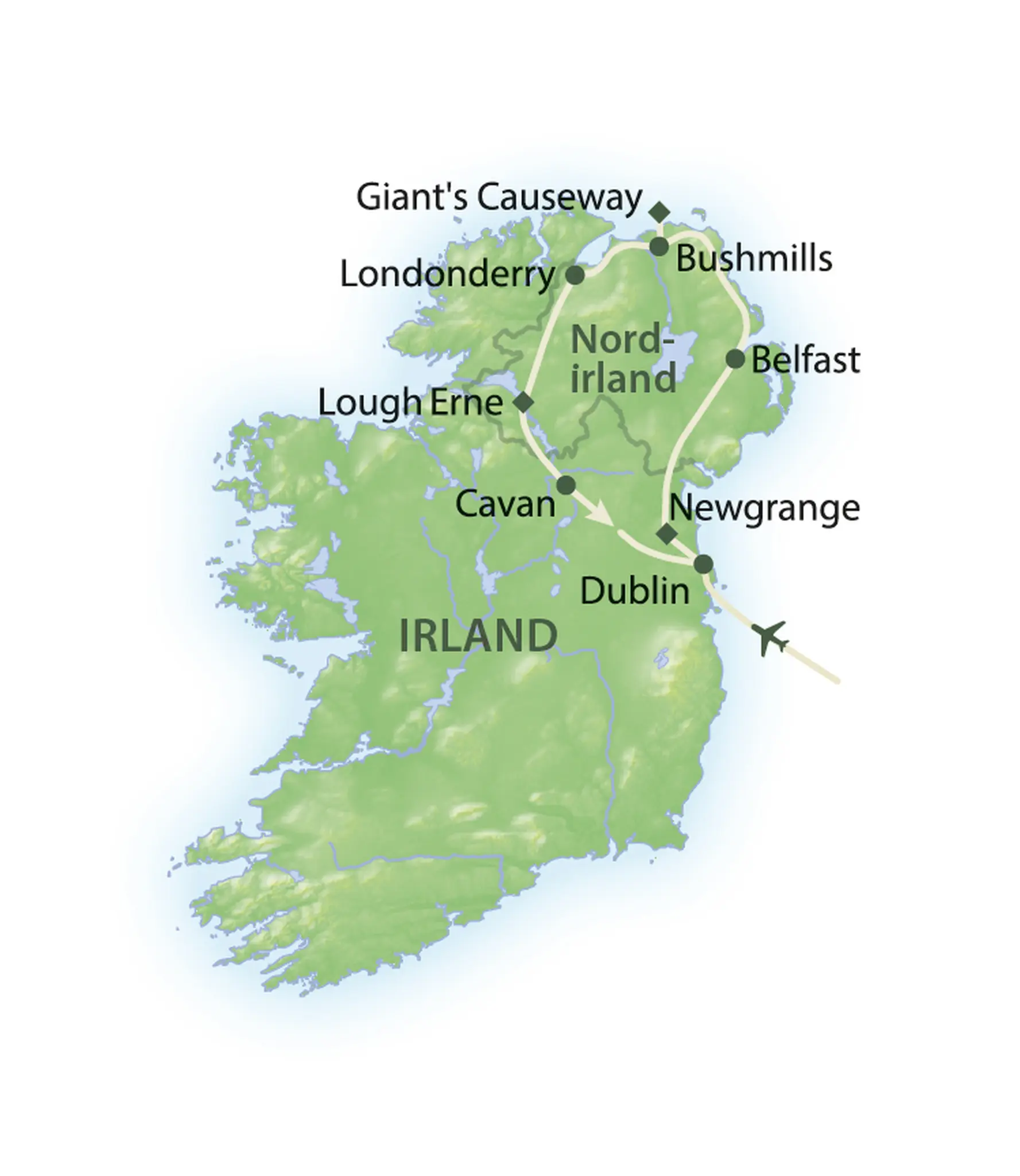 • Dublin eignet sich ausgezeichnet für einen Stopp und eine Besichtigung. Zögern Sie nicht, uns zu kontaktieren. Wir passen gerne das Programm an.