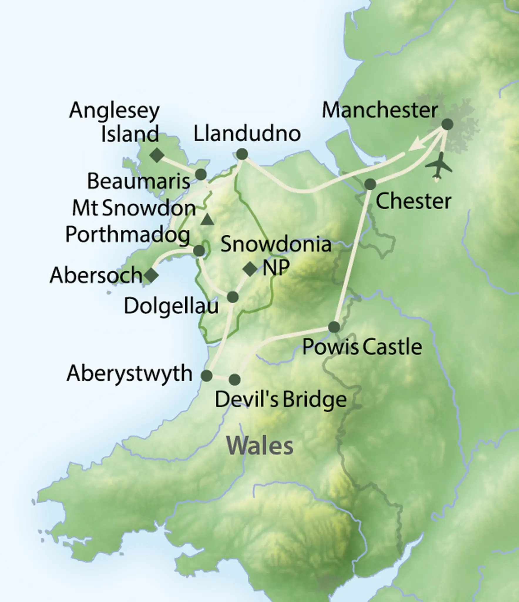 Der heutige Tag steht ganz im Zeichen des Snowdonia Nationalparks, einem der ältesten Nationalparks von Wales. Besuchen Sie die mittelalterlichen Burgen, idyllischen Dörfer oder machen Sie eine Wanderung durch die wunderbare Natur.