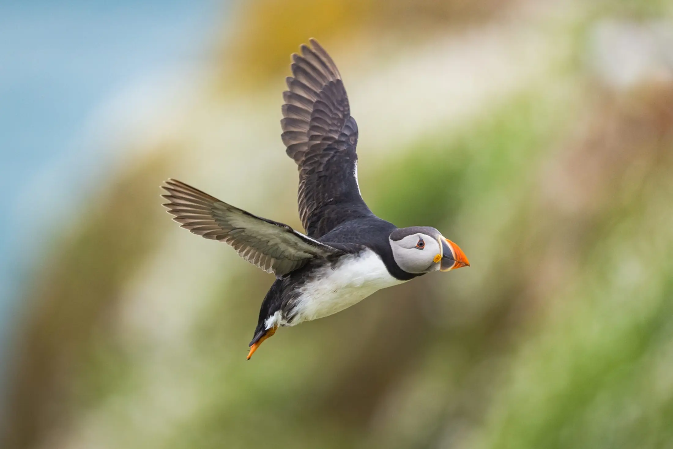 Die Insel Skomer ist der beste Ort, um Papageientaucher in Wales zu beobachten. Im Frühjahr und Sommer verwandelt sich die zerklüftete Insel vor der Küste von Pembrokeshire in einen Rausch aus Tausenden von surrenden Flügeln